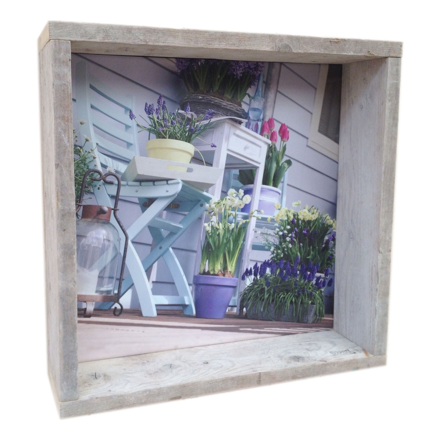 Een steigerhouten omlijsting voor een foto op canvas met afmeting 60x60cm. Leuk voor aan de muur of schutting. Levering excl. canvas doek.